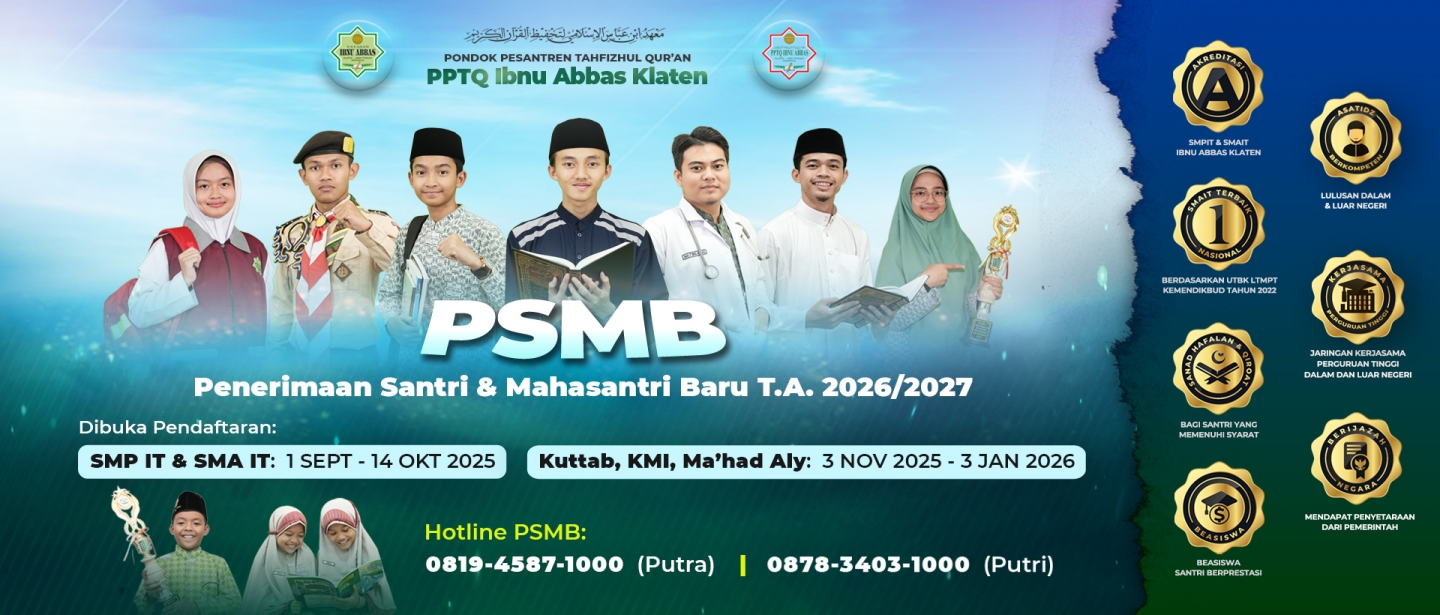 Bisa menempuh pendidikan di PPTQ Ibnu Abbas Klaten merupakan salah satu nikmat terbesar yang Allah SWT berikan kepada saya hingga detik ini. Di sanalah saya benar benar menemukan indahnya beribadah kepada Allah SWT. Disana juga saya mendapatkan ilmu ilmu yang kelak akan menjadi bekal bagi saya di dunia perkuliahan dan seterusnya. Ditambah lagi dengan bimbingan dari ustadz dan guru yang sangat berkompeten, menjadikan pondok ini salah satu yang terbaik di antara pondok pondok yang lainnya. Memang masih ada sedikit kekurangan, namun dengan kekurangan itulah kita menjadi pribadi yang lebih dewasa dan siap untuk menghadapi permasalahan dan tantangan di masa depan.