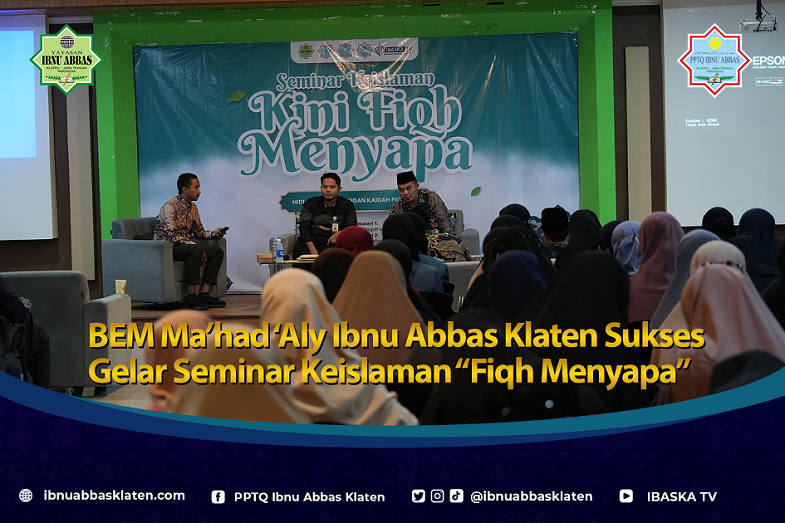 ibnuabbasklaten.com- Badan Eksekutif Mahasiswa (BEM) Ma’had ‘Aly Ibnu Abbas Klaten sukses menyelenggarakan Seminar Keislaman bertajuk “Kini Fiqh Menyapa: Hidup Terarah dengan Kaidah Fiqhiyyah” pada Sabtu (9/8), bertempat di Aula Lantai 3 Kampus 1 PPTQ Ibnu Abbas Klaten.