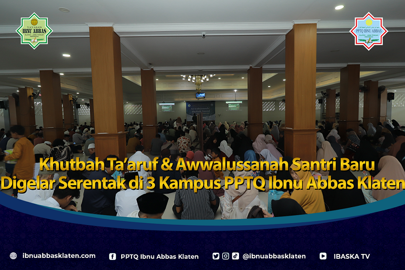 ibnuabbasklaten.com- Pondok Pesantren Tahfizhul Qur’an (PPTQ) Ibnu Abbas Klaten hari ini, Sabtu (19/7), menggelar kegiatan Khutbah Ta’aruf & Awwalussanah bagi santri dan mahasantri baru dari lima unit pendidikan: Kuttab, SMPIT, KMI, SMAIT, dan Ma’had ‘Aly. Kegiatan ini berlangsung serentak di tiga kampus PPTQ Ibnu Abbas Klaten, menandai dimulainya tahun ajaran baru 2025/2026.