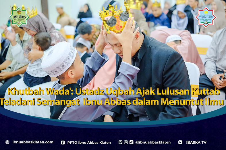 ibnuabbasklaten.com- Direktur PPTQ Ibnu Abbas Klaten, KH Muhammad Uqbah Azis, Lc MH, menyampaikan pesan mendalam dan penuh makna dalam Khutbah Wada’ pada prosesi Wisuda Kuttab bertajuk “Haflah Takharruj wa Takrim Santri Kuttab tahun pelajaran 2024/2025”, yang diselenggarakan dengan khidmat pada jumat pagi (13/6/2025).
