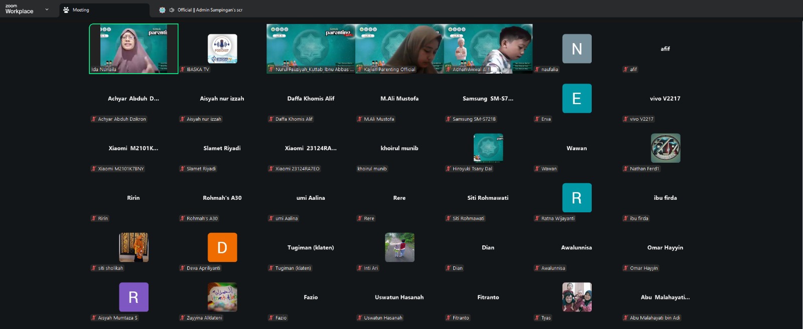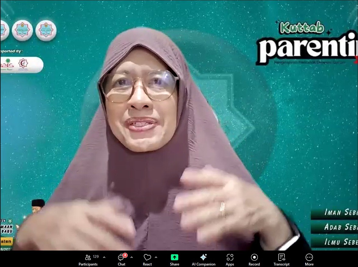 Kegiatan yang digelar secara online melalui Zoom Meetings ini menghadirkan Ustadzah Ida Nur Laila SSi Apt, Founder Wonderful Family Institute sekaligus pakar parenting, sebagai narasumber utama.