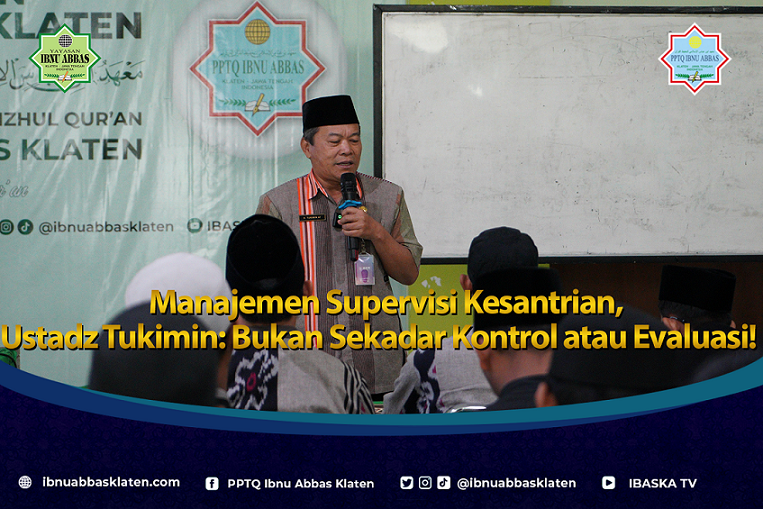 “Tujuan supervisi adalah memastikan kegiatan berjalan sesuai visi, misi, dan tujuan. Kalau ada yang kurang pas, kita pas-kan. Kalau ada yang mau keluar rel, kita kembalikan ke rel. Dan jika ada hal-hal luar biasa, kita dokumentasikan sebagai kelebihan dan kita bagikan agar bisa menjadi inspirasi bagi yang lain,” jelas beliau di hadapan para peserta di Aula lt 2 Kampus 1 PPTQ Ibnu Abbas Klaten.