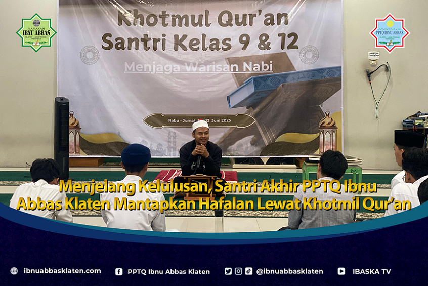 ibnuabbasklaten.com- Pondok Pesantren Tahfizhul Qur’an (PPTQ) Ibnu Abbas Klaten melalui Unit Ketahfizhan kembali menyelenggarakan kegiatan Khotmil Qur’an sebagai salah satu penanda penting bagi santri kelas 9 dan 12 yang tengah berada di penghujung masa belajarnya di pesantren.