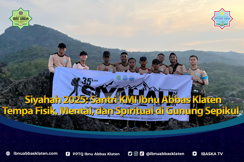 ibnuabbasklaten.com – Kulliyatul Mu’allimin Ibnu Abbas Klaten kembali menyelenggarakan kegiatan tahunan bertajuk Siyahah 2025, yang berlangsung pada Jum’at–Sabtu, 3–4 Oktober 2025. Tahun ini, perjalanan penuh makna tersebut mengambil rute menuju Gunung Sepikul, dengan jarak tempuh sekitar 35 kilometer dari kampus Ibnu Abbas Klaten.